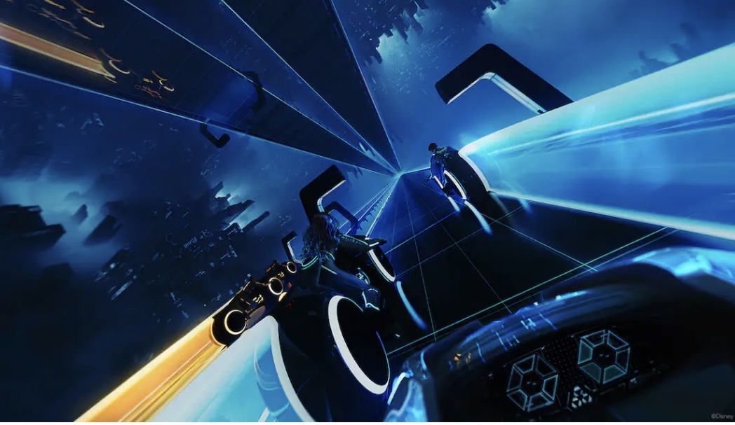 After years of waiting, endless announcements, and a pandemic, the indoor/outdoor roller coaster attraction opens April 4 in Tomorrowland. According to Disney, the story behind the ride picks up right after “TRON: LEGACY’ where Kevin’s son, Sam Flynn, has opened a second gateway into the digital realm called the grid. The first of these portals he created is found at Shanghai Disneyland with the original TRON Lightcycle Power Run.” The queue will supposedly transport guests to the Grid for a special Lightcycle race between Team Blue and Team Orange. The ride will be one of the fastest coasters at any Disney park.